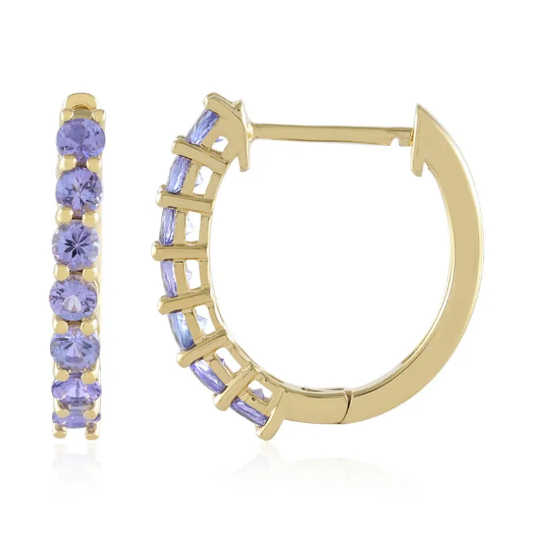Diese atemberaubenden Creolen mit 14 tansanischen Tansaniten im Rundschliff von insgesamt 1,638 Karat sind ein wahrer Blickfang. Sie sind aus 925er Sterlingsilber gefertigt und mit einer luxuriösen Goldplattierung versehen, die ihnen einen raffinierten Glanz verleiht. Sie eignen sich sowohl für zwanglose Ausflüge als auch für besondere Anlässe. Kombinieren Sie sie mit einem eleganten Abendkleid oder einem schicken Tagesoutfit für einen bezaubernden Look.