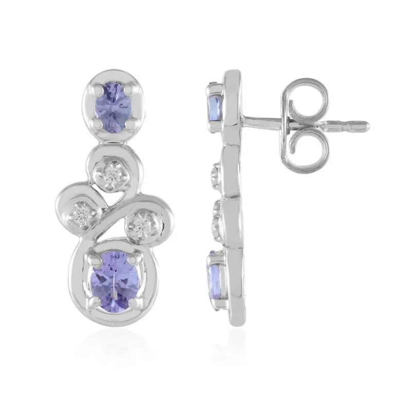 Entdecken Sie die Eleganz dieser Tansanit-Ohrringe aus Sterlingsilber mit exquisiten tansanischen Tansaniten und funkelnden Zirkonen aus Kambodscha. Ihr raffiniertes Design ist sowohl für legere als auch für formelle Anlässe geeignet. Kombinieren Sie sie mit einem eleganten Kleid oder einer schicken Bluse, um Ihren Look aufzuwerten. Diese Ohrringe mit einer Größe von 21 mm verleihen jedem Ensemble einen Hauch von lebendiger Farbe und Glanz.