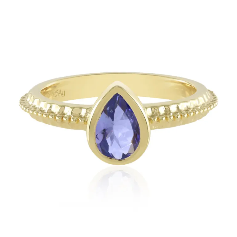 Tansania Teardrop Tansanit Goldplattierter Silberring, 0,519ct
