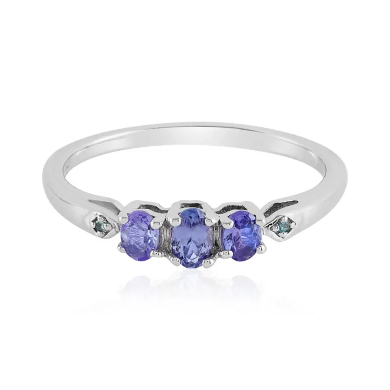 Dieser Ring präsentiert ein Trio aus oval geschliffenen Tansaniten, die direkt aus Tansania stammen und ein Gesamtkaratgewicht von 0,531 aufweisen. Flankiert von zwei schimmernden blauen Diamanten SI1 ist der zentrale Tansanit der Star und besticht durch seinen fliederfarbenen Farbton. Gefertigt aus hochwertigem 925er Sterling Silber, verkörpert dieser Ring Eleganz. Er ist das perfekte Accessoire, um der Geschäftskleidung einen Hauch von Farbe zu verleihen oder einen schicken Abendlook aufzuwerten.