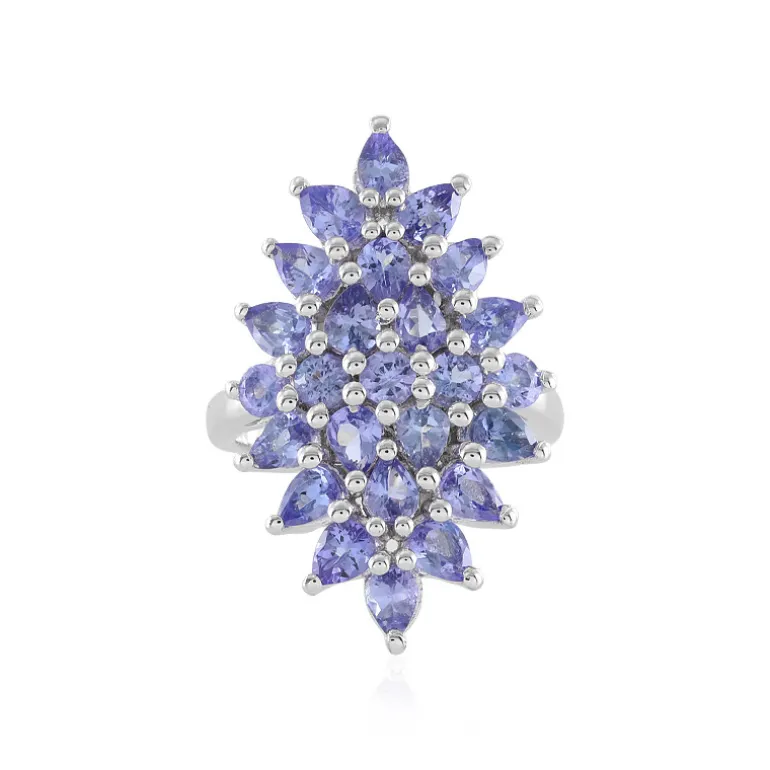 Dieser exquisite Ring wurde mit der Anziehungskraft des tansanischen Himmels gefertigt und zeigt eine Konstellation aus zwanzig tropfenförmigen und fünf runden Tansaniten von insgesamt 2,826 Karat, gefasst in poliertem 925er Sterlingsilber. Mit seinen Maßen von 25 x 20 mm ähnelt das filigrane Design einer luxuriösen Schneeflocke und macht aus einer einfachen Geste ein Statement der Raffinesse. Dieser Ring ist ideal für Abendveranstaltungen und passt sowohl zu einem Cocktailkleid als auch zu einer eleganten Robe und ist somit eine atemberaubende Ergänzung für jede Schmucksammlung.