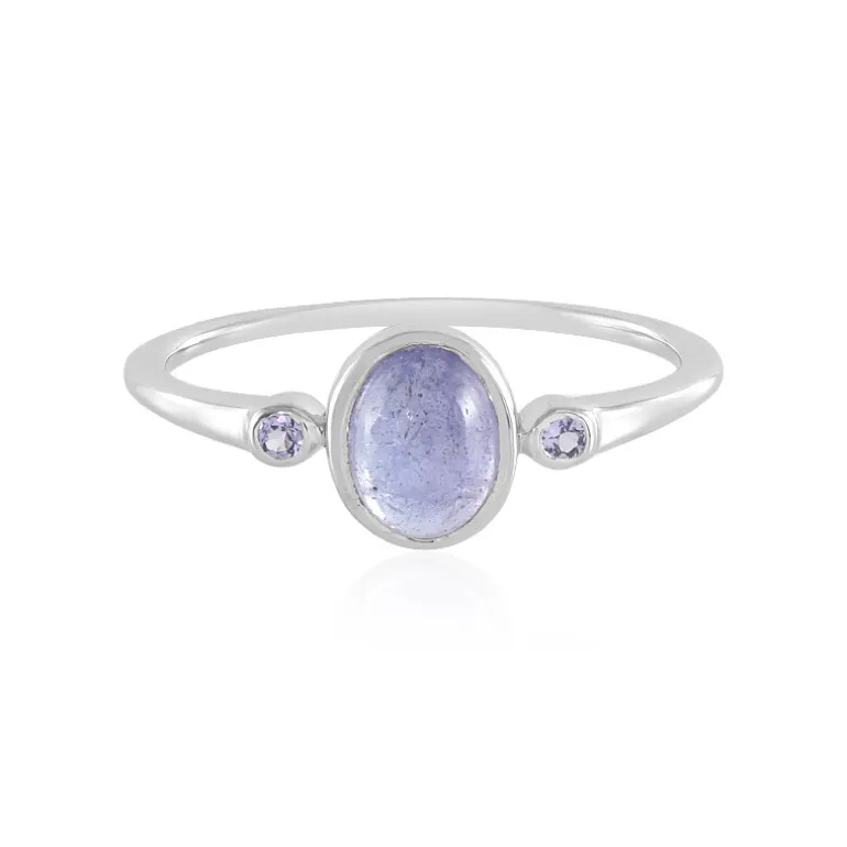 Dieser auffällige Ring zeigt einen fesselnden ovalen Cabochon-Tansanit, der aus den üppigen Landschaften Tansanias stammt und ein beeindruckendes Gewicht von 1,233 ct aufweist. Flankiert von zwei Tansaniten im Rundschliff mit einem Gesamtgewicht von 0,09 ct, kombiniert dieser Ring aus 925er Sterlingsilber Eleganz mit einem modernen Touch. Das stromlinienförmige Design und die ruhigen blauen Farbtöne machen ihn zu einer vielseitigen Wahl, die sich sowohl für legere Tageskleidung als auch für formellere Anlässe am Abend eignet.