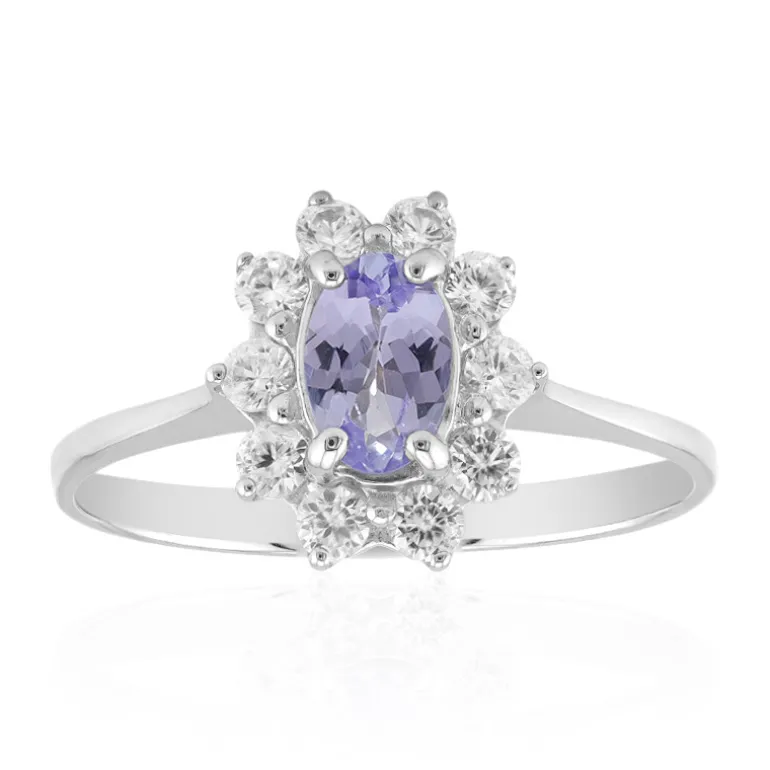 Entdecken Sie Eleganz mit diesem Tansanit Sterling Silber Ring. Mit einem fesselnden 0,451 Karat Tansanit im Ovalschliff, umgeben von 10 funkelnden kambodschanischen Zirkonen, strahlt dieses Schmuckstück Raffinesse aus. Das Schmuckstück aus platiniertem 925er Sterlingsilber eignet sich sowohl für besondere Anlässe als auch für den Alltag. Kombinieren Sie ihn mit einem Cocktailkleid für einen Abend oder verleihen Sie einem Freizeitoutfit Glanz.