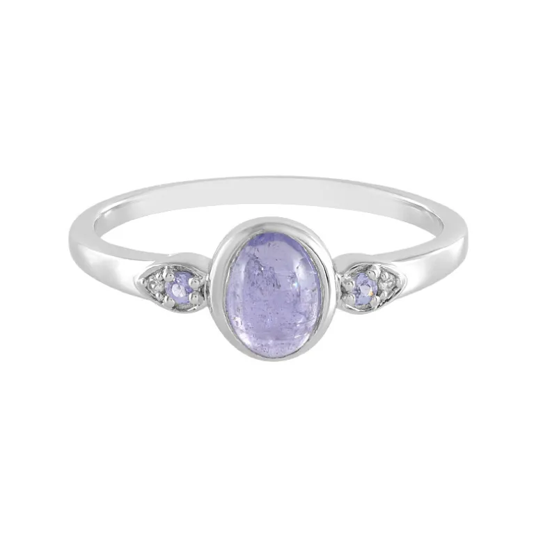 Erfreuen Sie sich an der Faszination dieses anmutigen tansanischen Rings mit einem ovalen Tansanit-Cabochon von 1,71 Karat. Flankiert von zwei strahlenden Tansaniten im Rundschliff und akzentuiert mit kambodschanischen Zirkon-Details von insgesamt 0,018ct, ist dieser Ring aus poliertem 925er Sterling Silber gefertigt und wiegt ca. 1,8g. Die beruhigenden Lavendelfarben und der dezente Glanz des Sterlingsilbers passen sowohl zu Tages- als auch zu Abendgarderobe und machen ihn zu einer vielseitigen Ergänzung für jede Schmucksammlung.
