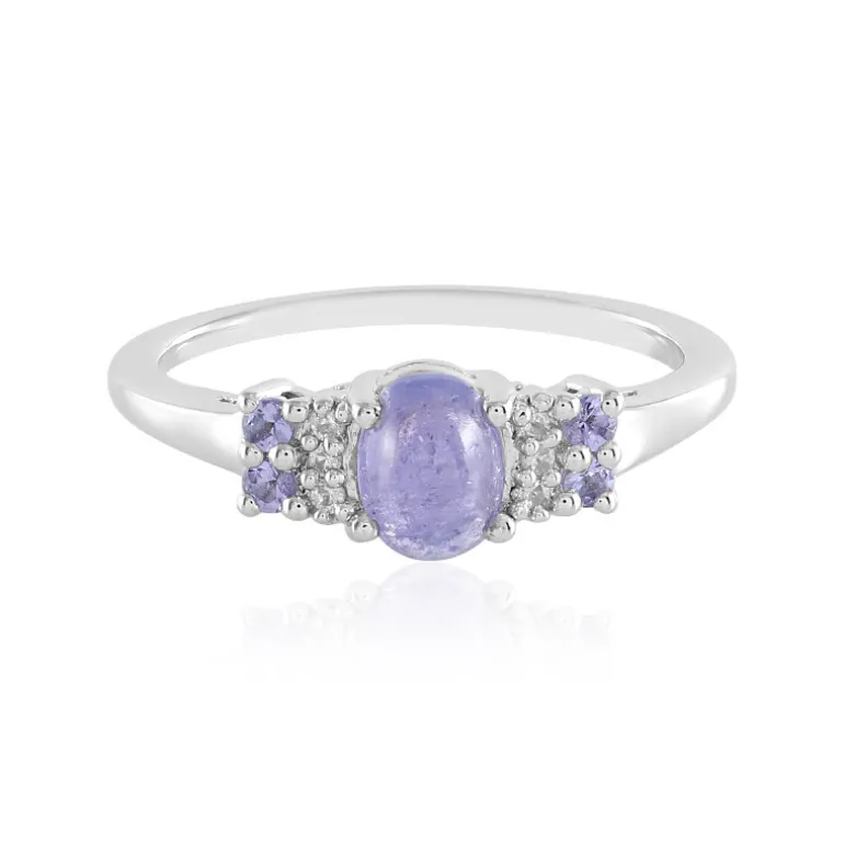 Entdecken Sie den subtilen Charme dieses Rings aus Sterlingsilber mit einem ovalen Tansanit-Cabochon in der Mitte, flankiert von runden Tansaniten und kambodschanischen Zirkon-Akzenten. Die ruhigen, lilafarbenen Töne des 1,035 ct großen Edelsteins, der aus Tansania stammt, werden durch die funkelnde Entourage von insgesamt 0,135 ct Tansaniten und 0,072 ct Zirkonen wunderbar ergänzt. Mit einem Gewicht von ca. 2,36 g aus 925er Sterlingsilber verbindet dieser Ring die Anziehungskraft edler Edelsteine mit dem Glanz hochwertigen Metalls. Er ist ideal, um dem Alltag einen Hauch von Raffinesse zu verleihen, oder um ein elegantes Accessoire für besondere Anlässe zu sein.
