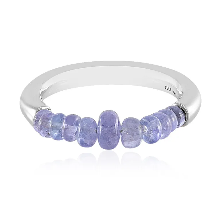 Dieser schicke Ring zeigt eine Reihe von facettierten Tansanit-Perlen, die wunderschön auf einem schlanken Sterlingsilberband montiert sind. Das Design schafft ein perfektes Gleichgewicht zwischen Schlichtheit und Eleganz und eignet sich sowohl für Freizeitkleidung als auch für besondere Anlässe. Kombinieren Sie dieses atemberaubende Schmuckstück mit Pastellfarben oder neutralen Tönen, um seinen fesselnden lila-blauen Farbton zu betonen.