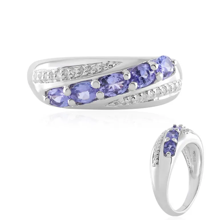 Dieser anmutig gearbeitete Ring aus 925er Sterlingsilber präsentiert ein Quintett tansanischer Tansanite im Ovalschliff mit einem Gesamtgewicht von 0,729 ct, flankiert von funkelnden Akzenten aus indischem Weißtopas. Mit einem Gewicht von ca. 3,93 g ist er eine Sinfonie aus schimmernden Violett- und reinen Silbertönen. Ob für einen besonderen Anlass oder zur Aufwertung der Alltagskleidung, dieser Ring verbindet moderne Raffinesse mit zeitloser Eleganz.