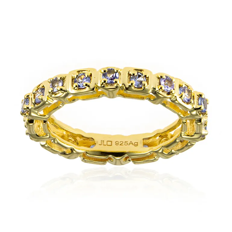 Dieser exquisite Ring besteht aus einer Reihe hochwertiger Tansanite, die kunstvoll in ein vergoldetes 925er Sterlingsilberband gefasst sind. Das filigrane Design bringt den zarten Lavendelton der Steine zur Geltung und bietet eine moderne Variante des klassischen Ewigkeitsstils. Dieser Ring ist ideal für die Abendgarderobe oder besondere Anlässe und verleiht jedem Outfit einen Hauch von Raffinesse.