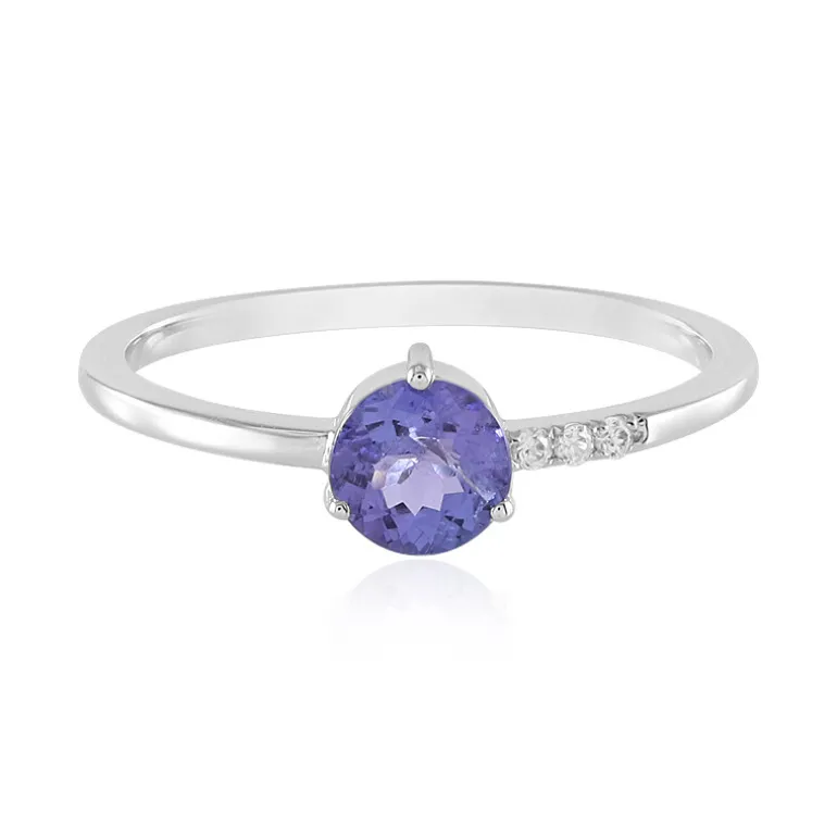 Schicker tansanischer Tansanit Platinplattierter Silberring, 0,618ct