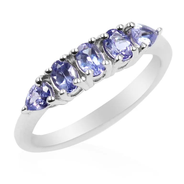 Schmücken Sie Ihre Hand mit der fesselnden Schönheit dieses raffinierten 925er Silberrings mit einem Gesamtgewicht von 0,578 Karat an Tansaniten. Das Herzstück des Rings besteht aus drei Tansaniten im Ovalschliff, die sorgfältig aus den reichen Minen Tansanias ausgewählt wurden, gepaart mit zwei elegant gearbeiteten tropfenförmigen Tansaniten, die den Reiz des Rings unterstreichen. Das schimmernde Band aus 925er Sterlingsilber mit einem Gewicht von ca. 2,06 Gramm hat eine schlanke und moderne Silhouette, die Komfort und Stil garantiert. Sein vielseitiges Design eignet sich sowohl für den eleganten Alltag als auch für besondere Anlässe.