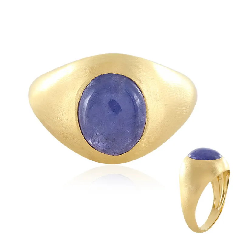 Ovaler Tansanit-Cabochon Goldplattierter Silberring, 3ct