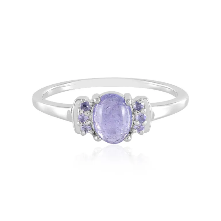 Entdecken Sie den fesselnden Charme unseres Tansanit-Silberrings mit einem ovalen Tansanit-Cabochon von 1,287 Karat, der anmutig von Sterlingsilber umschlossen wird. Das Schmuckstück ist mit sechs weiteren Tansaniten im Rundschliff von insgesamt 0,126 Karat verziert, die alle aus den fruchtbaren Ländern Tansanias stammen. Das Design des Rings fängt das Licht wunderschön ein und setzt ein subtiles, aber beeindruckendes Statement. Ob bei einem eleganten Abendessen oder einem legeren Brunch, dieses raffinierte Accessoire wird Ihre Garderobe mit seinen verlockenden violetten Farbtönen und seinem modernen Charme ergänzen.
