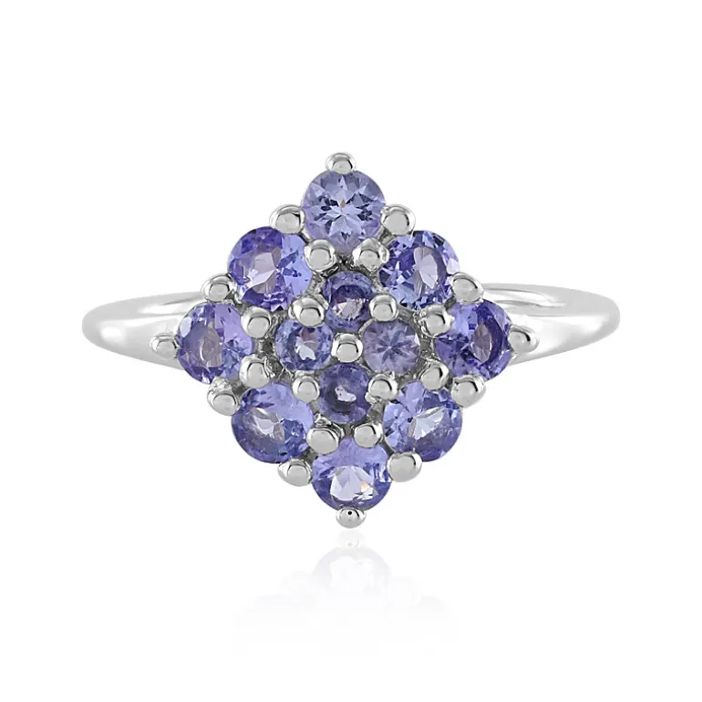 Entdecken Sie die bezaubernde Anziehungskraft dieses raffinierten Tansanit-Cluster-Rings. Dieses Meisterwerk aus Sterlingsilber ist mit zwölf sorgfältig ausgewählten Tansaniten aus Tansania von insgesamt 0,945 Karat besetzt und verbindet raffinierten Geschmack mit einem Hauch von Laune. Die Edelsteine im Rundschliff sind in einem bezaubernden floralen Muster angeordnet und machen dieses Schmuckstück zu einem idealen Geschenk für Momente, die einen Hauch von Eleganz erfordern. Der Ring eignet sich für Cocktailpartys oder als raffinierte Ergänzung zu Ihrer täglichen Kleidung. Die lebhaften Blautöne des Rings und der Glanz des 925er Sterlingsilbers ergänzen jedes Ensemble mit Anmut.