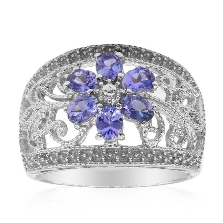 Dieser atemberaubende Ring besteht aus einem Strauß von sechs ovalen Tansaniten, die aus den berühmten Minen Tansanias stammen. Mit einem Gesamtgewicht von 1 Karat sind diese exquisiten Edelsteine in 925er Sterlingsilber eingebettet und wiegen etwa 5,26 Gramm. Der Ring mit den Maßen 25×21 mm bietet ein faszinierendes Lichtspiel und die leuchtenden Blautöne des Tansanits. Das filigrane Design ist perfekt, um Abendgarderobe zu akzentuieren oder einen Hauch von Eleganz in alltägliche Outfits zu bringen und wertet jeden Look auf.