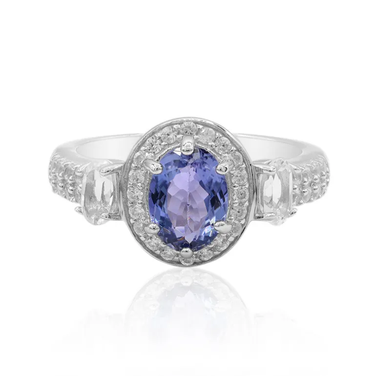 Anspruchsvoller Tansanit & Weißer Topas Silberring, Tansania 2ct