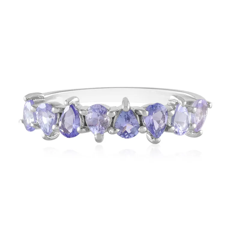 Entdecken Sie Eleganz mit diesem Tansanit-Sterlingsilberring. Geschmückt mit acht atemberaubenden Tansaniten im Birnenschliff aus Tansania mit insgesamt 1,008 Karat ist dieser Ring eine Vision in schimmerndem Violett. Der Ring ist aus platiniertem 925er Sterling Silber gefertigt und besticht durch sein modernes und zeitloses Design. Perfekt für formelle Anlässe oder um die Alltagskleidung aufzuwerten, ist dieses Schmuckstück ein schillerndes Statement für Stil.