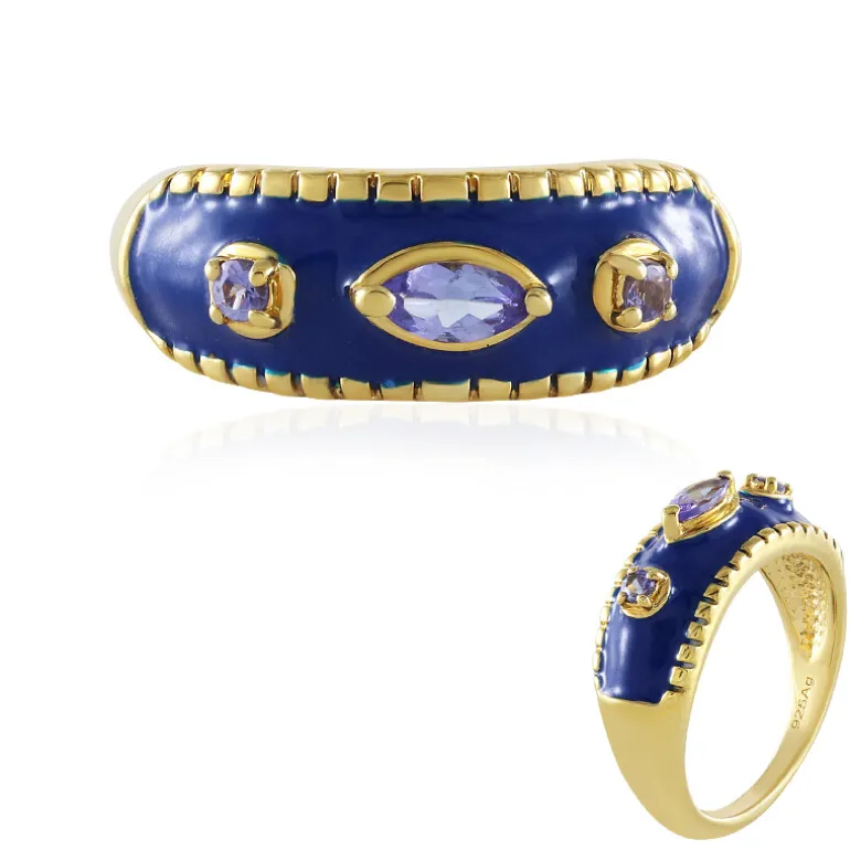Dieser schicke Ring zeigt einen atemberaubenden Tansanit im Marquise-Schliff, der von zwei runden Tansaniten wunderbar ergänzt wird. Er ist aus vergoldetem 925er Sterlingsilber gefertigt und besticht durch sein elegantes Design, das jedem Outfit einen raffinierten Touch verleiht. Dieser Ring ist perfekt für besondere Anlässe oder zur Aufwertung alltäglicher Looks und zelebriert die fesselnde Anziehungskraft tansanischer Edelsteine.