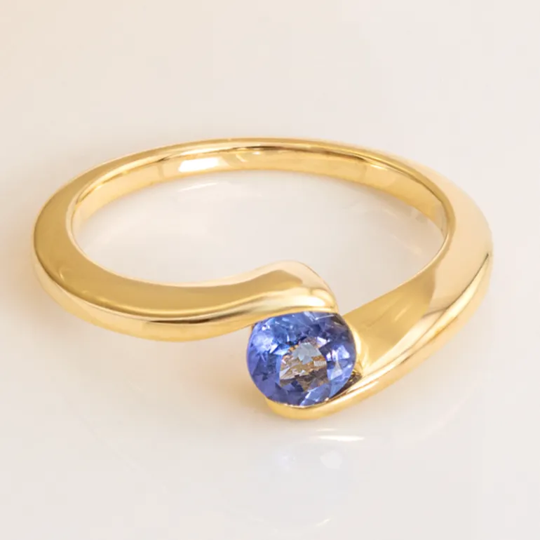 Entdecken Sie die Wärme des Goldes und die kühle Anziehungskraft des Tansanits mit diesem fesselnden Ring. Der runde Tansanit im Brillantschliff mit einem Gewicht von 0,389 Karat stammt aus den sonnenverwöhnten Ebenen Tansanias und ist in vergoldetem 925er Sterlingsilber eingefasst. Die eleganten Rundungen des Rings heben den Glanz des Steins hervor und machen ihn zu einem perfekten Begleiter sowohl für einen legeren Brunch als auch für einen formellen Abend. Dieser Ring verspricht, jedem Ensemble einen Hauch von Raffinesse zu verleihen.