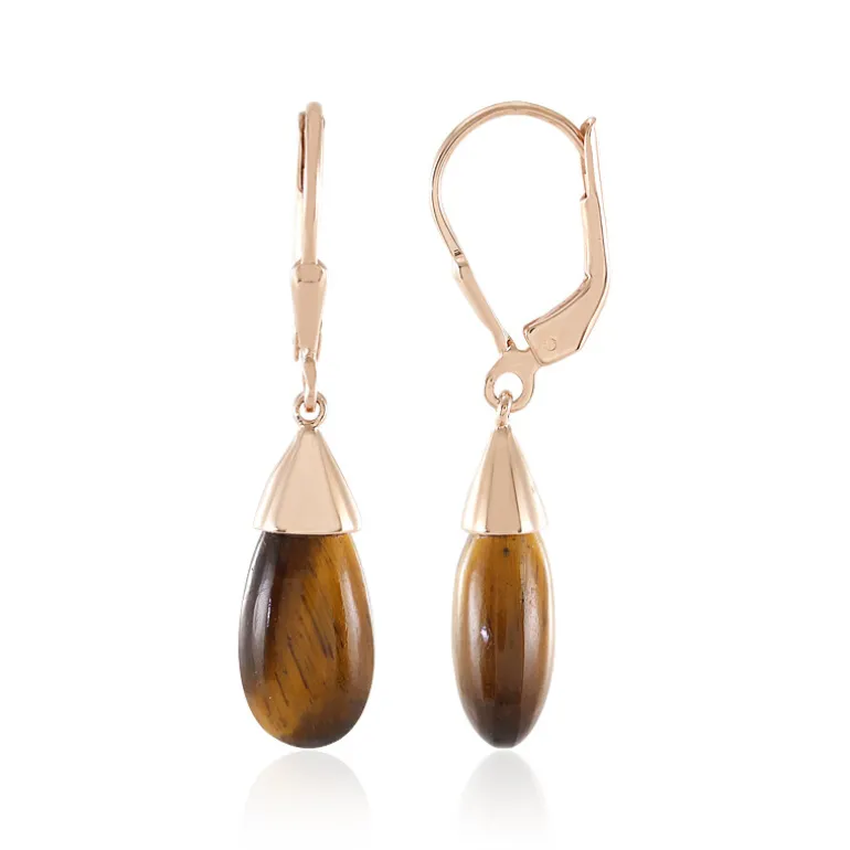 Südafrikanische 8,1ct Tigerauge Rose vergoldet Silber Ohrringe