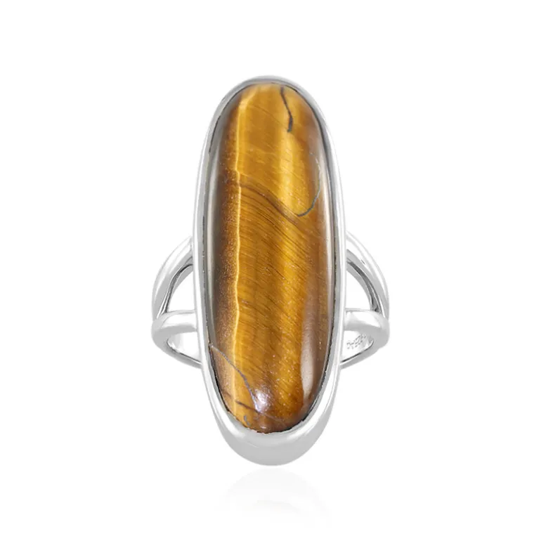Entdecken Sie die Anziehungskraft dieses bezaubernden Tigerauge-Rings mit einem großzügigen ovalen 12,6-karätigen Cabochon-Edelstein aus Mexiko, gefasst in hochwertiges platiniertes 925er Sterlingsilber. Die warmen, goldenen Farbtöne des Steins sind faszinierend, mit natürlichen Bändern, die das Licht einfangen und den Blick auf die einzigartige Schönheit jedes einzelnen Rings lenken. Das schlichte, längliche Design verleiht jedem Ensemble einen modernen Touch und macht ihn zu einer vielseitigen Ergänzung Ihrer Schmucksammlung. Dieser Ring passt sowohl zu legeren als auch zu formellen Anlässen und sorgt bei jeder Veranstaltung für Gesprächsstoff.