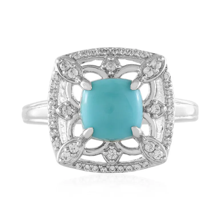 Dieser exquisite Ring zeigt einen bezaubernden Türkis aus den USA, gefasst in elegantem 925er Sterlingsilber mit einer glänzenden Platinbeschichtung. Der antike Kissen-Cabochon ist von funkelnden Zirkonen aus Kambodscha umgeben, die ihm eine umwerfende Brillanz verleihen. Dieser 24×20 mm große Ring eignet sich sowohl für legere als auch für formelle Anlässe und ergänzt jedes Outfit mit seiner zeitlosen Eleganz und seinem einzigartigen Design.