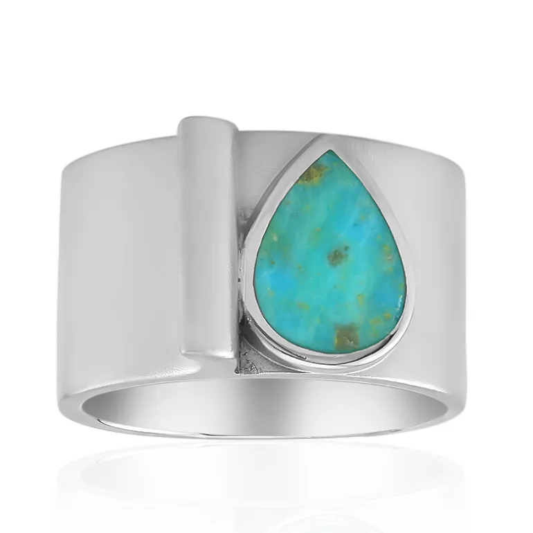 Entdecken Sie die ruhige Schönheit dieses Rings aus platiniertem 925er Sterlingsilber, der mit einem 1,454 Karat schweren Türkis im Tropfenschliff aus den USA bezaubert. Mit einer beeindruckenden Größe von 10×8 mm ist der Edelstein das Herzstück dieses modernen Designs. Mit einem Gesamtgewicht von 7,6 Gramm wird die starke Präsenz dieses Rings durch den beruhigenden blauen Farbton ausgeglichen. Perfekt, um Ihrer Geschäftskleidung einen Hauch von Eleganz zu verleihen oder einen raffinierten Farbklecks für einen Abend im Freien.