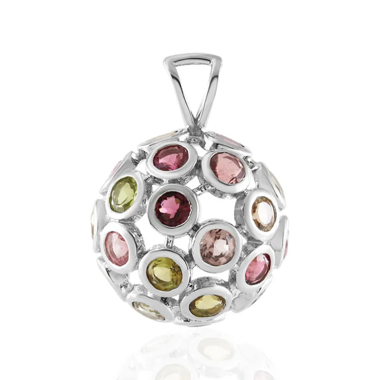 Entdecken Sie die lebendige Anziehungskraft dieses fesselnden Anhängers mit einer faszinierenden Reihe von Turmalinen im Rundschliff, die alle sorgfältig in den üppigen Landschaften Madagaskars gewonnen wurden. Die insgesamt 1,905 Karat schweren Edelsteine sind elegant in platiniertes 925er Sterlingsilber mit einem Gewicht von ca. 2,34 Gramm gefasst, um ihre satten Farbtöne und ihr Funkeln zu betonen. Der 22×16 mm große Anhänger bildet einen reizvollen Tanz der Farben, der ihn zu einem Blickfang für jedes Ensemble macht, ideal sowohl für ein legeres Brunch als auch für formelle Abendveranstaltungen.