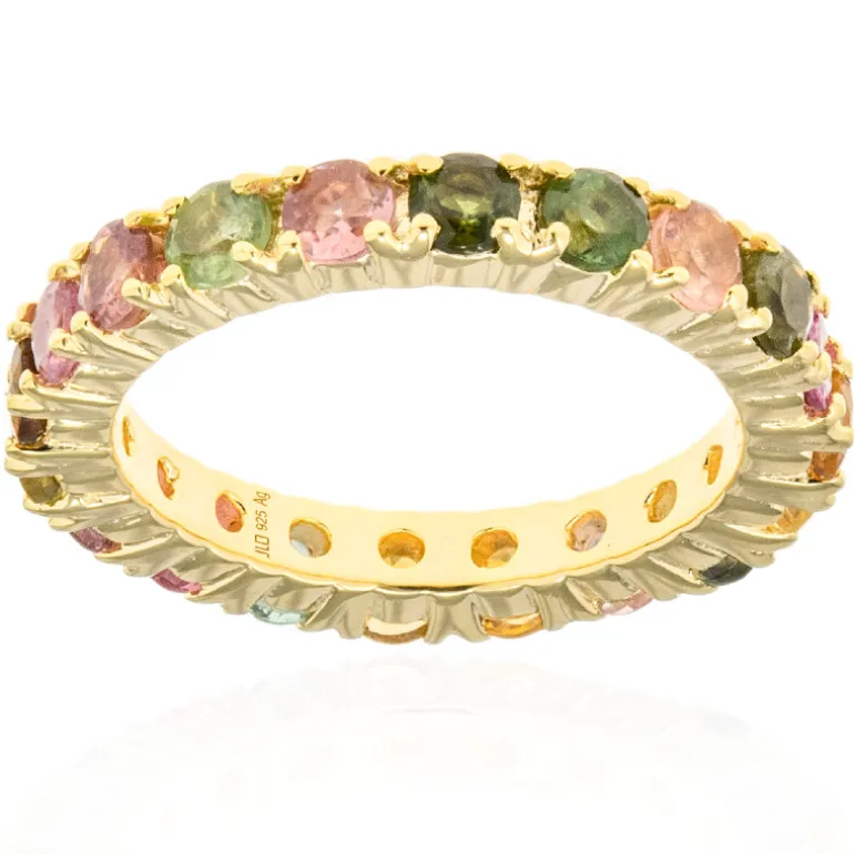 Entdecken Sie die Eleganz dieses atemberaubenden Rings aus Sterlingsilber mit 20 leuchtenden Turmalinen aus Madagaskar. Die in Gold Vermeil gefassten Steine im Brillantschliff verleihen diesem Schmuckstück Raffinesse. Er eignet sich sowohl für legere als auch für formelle Anlässe und passt hervorragend zu Abendgarderobe oder verleiht Tagesoutfits einen Hauch von Farbe. Eine schillernde Ergänzung für jede Schmucksammlung.