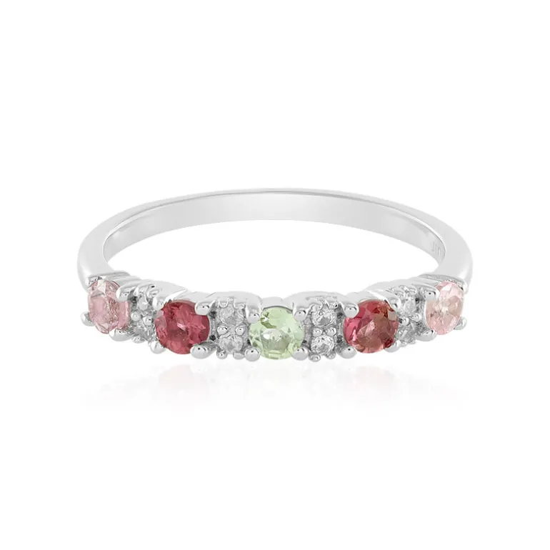 Gönnen Sie sich die Pracht natürlicher Farbtöne mit diesem bezaubernden mehrfarbigen Turmalin- und Zirkon-Sterlingsilberring, der ein einzigartiges Arrangement aus funkelnden Edelsteinen bietet. Fünf Turmaline aus Madagaskar mit einem Gesamtgewicht von 0,319 ct wurden sorgfältig ausgewählt und durch acht schillernde Zirkone aus Kambodscha mit einem Gewicht von 0,06 ct ergänzt. Alle Steine sind in platiniertes 925er Sterlingsilber gefasst und machen den Ring nicht nur zu einem Schmuckstück, sondern zu einem Kunstwerk. Dieser Ring ist ideal für Cocktailpartys oder als elegante Ergänzung zu Ihrer Alltagskleidung und verspricht, eine vielseitige Ergänzung Ihrer Sammlung zu sein.