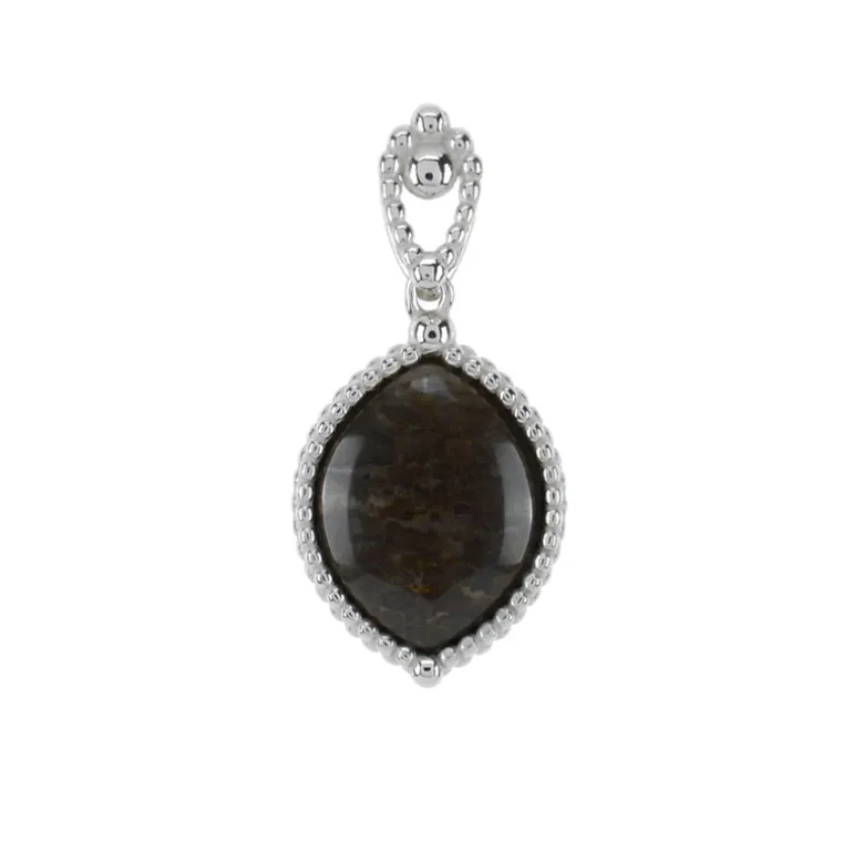 Dieser bezaubernde Anhänger aus polnischem Fossilholz versprüht einen Hauch von antikem Charme. Mit einem 3,469 Karat schweren Edelstein im Marquise-Cabochon-Schliff, eingebettet in 925er Sterling Silber, strahlt dieses Stück Raffinesse aus. Der Anhänger mit den Maßen 25×13 mm zeigt die einzigartigen Muster von versteinertem Holz und ist ein Wunder der Natur. Er ist ideal für alle, die Schmuck mit einer Geschichte zu schätzen wissen. Er kann das Herzstück eines mehrschichtigen Looks sein oder bei formelleren Anlässen für sich allein stehen.