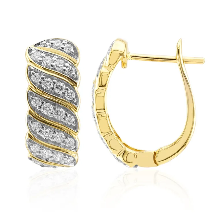 Entdecken Sie die Eleganz dieser atemberaubenden Goldohrringe, die mit funkelnden VVS1-Diamanten von insgesamt 0,496 ct besetzt sind. Die Ohrringe weisen ein wunderschönes Muster auf, das jedem Outfit einen Hauch von Raffinesse verleiht. Diese Ohrringe sind sowohl für den Alltag als auch für besondere Anlässe geeignet und setzen einen luxuriösen Akzent. Kombinieren Sie sie mit einem eleganten Abendkleid oder einem schicken Geschäftsanzug, um Ihren Look zu vervollständigen.