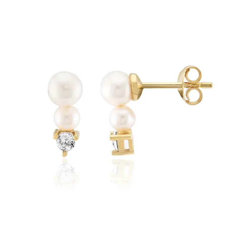 Entdecken Sie Eleganz mit diesen schicken Ohrringen mit chinesischen Süßwasserperlen und funkelnden Zirkonen aus Tansania. Der zarte Charme der Perlen wird durch den warmen Schimmer des vergoldeten Sterlingsilbers wunderbar verstärkt. Diese Ohrringe sind sowohl für den Alltag als auch für besondere Anlässe geeignet und können sowohl zu einem eleganten Abendkleid als auch zu einem raffinierten Tagesoutfit getragen werden, um einen Hauch von zeitloser Anmut zu verleihen.