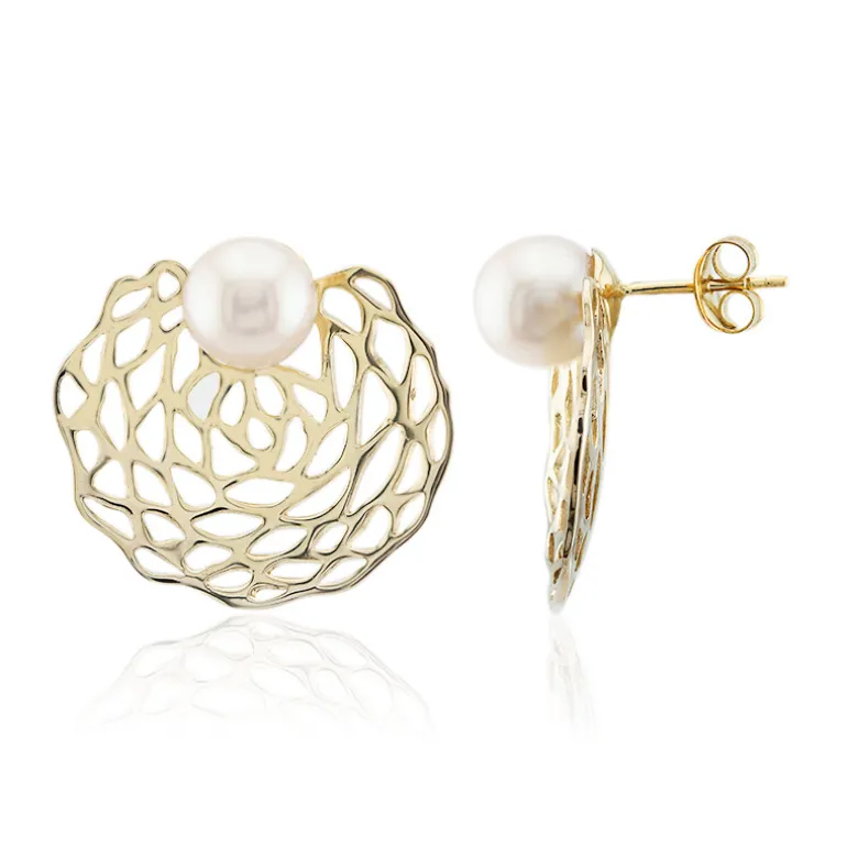 Schicke weiße Perlenohrringe aus vergoldetem Silber