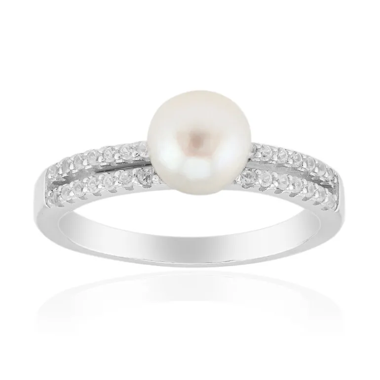 Dieser atemberaubende Ring mit einer glänzenden weißen Süßwasser-Zuchtperle aus China und funkelnden Zirkonen aus Tansania sorgt für Eleganz. Die runde 6-mm-Perle ist in 925er Sterlingsilber gefasst, was ihn zu einem zeitlosen Schmuckstück macht. Perfekt für Hochzeiten oder formelle Anlässe. Kombinieren Sie diesen exquisiten Ring mit Ihrer Lieblingsabendgarderobe für einen Hauch von Raffinesse.