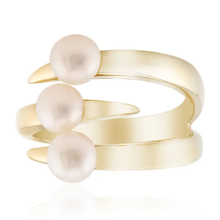 Genießen Sie die zeitlose Schönheit dieses schicken Rings aus vergoldetem Sterlingsilber, der mit drei glänzenden runden chinesischen Süßwasserperlen von je ca. 5 mm Durchmesser besetzt ist. Das elegante Spiraldesign legt sich anmutig um den Finger und verleiht einem klassischen Look eine moderne Note. Perfekt für formelle Anlässe oder um Ihrem Alltagsoutfit einen Hauch von Eleganz zu verleihen. Seine Vielseitigkeit ist unübertroffen und macht ihn zu einer wunderbaren Ergänzung für jede Schmucksammlung.