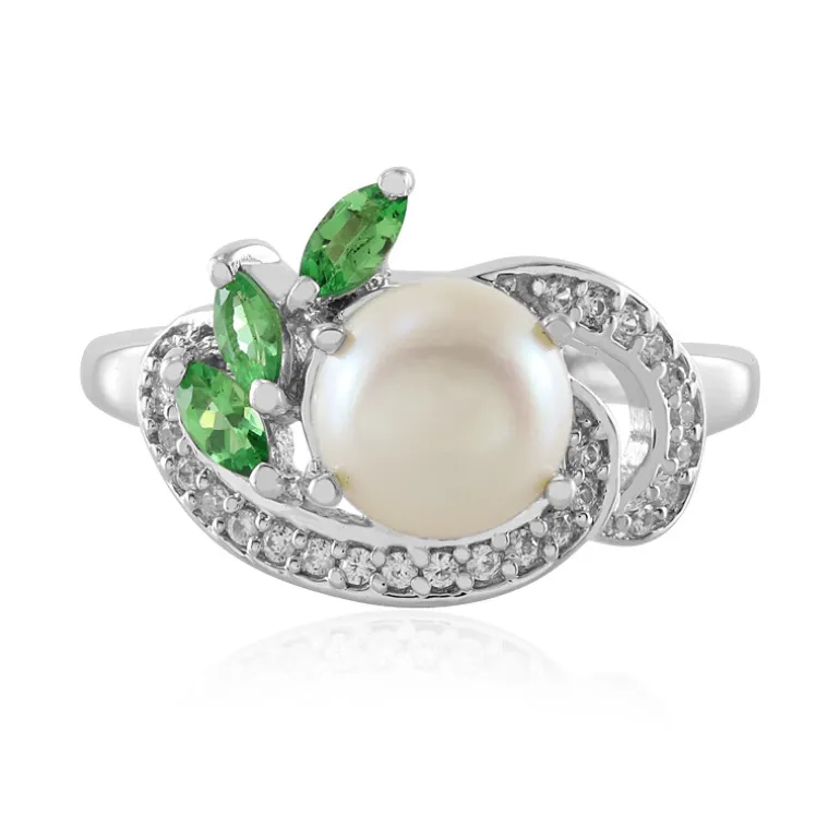 Dieser schicke Ring aus Sterlingsilber zeigt eine atemberaubende weiße Süßwasser-Zuchtperle aus China, umgeben von lebhaften Tsavoriten und funkelnden Zirkon-Akzenten. Die Mischung aus Marquise und rundem Schliff verleiht ihm einen Hauch von Raffinesse und eignet sich sowohl für elegante Abende als auch für das tägliche Tragen. Kombinieren Sie sie mit formeller Kleidung oder Freizeitoutfits für einen raffinierten Look, der zeitlose Eleganz ausstrahlt.