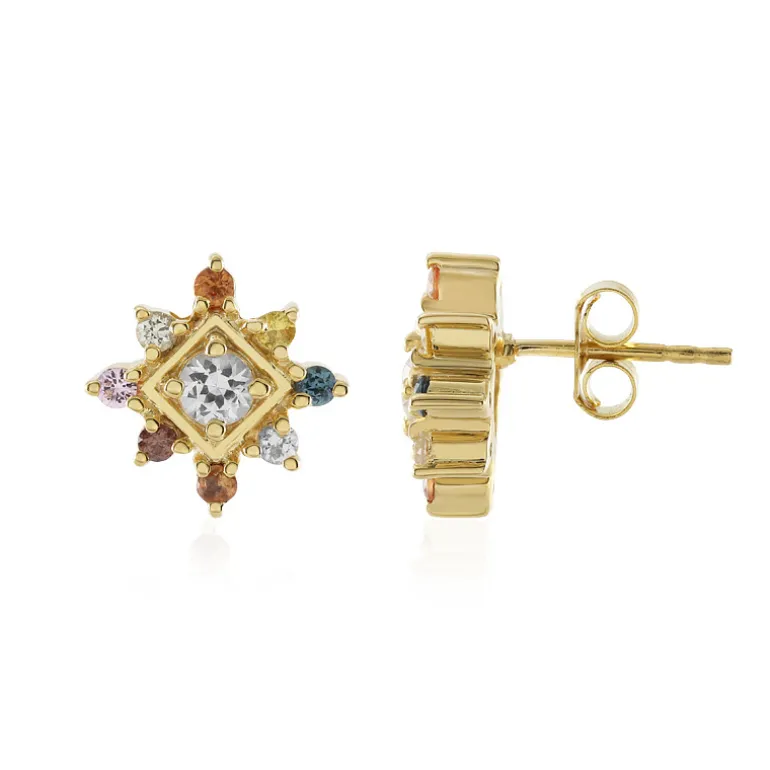 Schmücken Sie Ihre Ohren mit der Pracht weißer Saphire aus Madagaskar. Diese exquisiten Ohrringe aus vergoldetem 925er Sterlingsilber bestechen durch ihr Design mit einem zentralen weißen Saphir im Rundschliff, der von einer funkelnden Konstellation aus 16 mehrfarbigen Saphiren mit insgesamt 1,201 Karat umgeben ist. Die Größe von 13 mm sorgt für einen auffälligen und zugleich eleganten Akzent, der sowohl zu legeren als auch zu formellen Anlässen passt. Diese Ohrstecker sind eine vielseitige Ergänzung für jede Schmucksammlung und eignen sich perfekt für alle, die einen Hauch von weltlichem Charme und Raffinesse zu schätzen wissen.