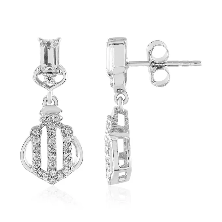 Entdecken Sie die zeitlose Eleganz dieser platinierten Sterlingsilber-Ohrringe mit einem Paar weißer Saphire im Oktagon-Schliff aus Madagaskar (insgesamt 0,545 ct), die anmutig an schimmernden Zirkonhalos aus Kambodscha hängen. Mit zusätzlichen Zirkon-Akzenten im Rundschliff (insgesamt 0,387 ct) strahlen diese 22-mm-Ohrringe Raffinesse aus und bieten einen vielseitigen Hauch von Luxus für Tages- und Abendgarderobe. Ideal für feierliche Anlässe oder als schicke Ergänzung zu Ihrer Bürokleidung.