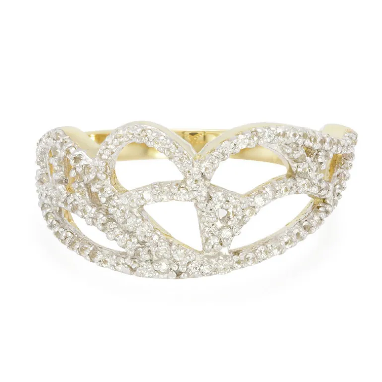 Dieser stattliche Ring präsentiert einen Tanz des Lichts mit 127 weißen Saphiren im Brillantschliff aus Madagaskar, die sorgfältig in ein glänzendes Band aus vergoldetem 925er Sterlingsilber gefasst sind. Mit einem Gewicht von 0,52 Karat funkeln die Edelsteine auf der 21 x 21 mm großen Oberfläche und verleihen jedem Ensemble einen opulenten Touch. Dieses Schmuckstück, das sich ideal für Abendveranstaltungen oder Alltagsoutfits eignet, zeugt von Eleganz und feiner Handwerkskunst.