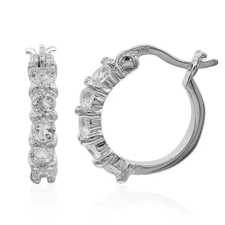 Diese atemberaubenden Ohrringe bestehen aus 10 weißen Topasen im Rundschliff aus Nigeria, die elegant in 925er Sterlingsilber gefasst sind. Mit einem Gesamtkaratgewicht von 0,919 ct und einem 14 mm Design bieten sie eine zeitlose Eleganz, die für jeden Anlass geeignet ist. Diese Ohrringe eignen sich perfekt für einen eleganten Abend oder einen Hauch von Glanz im Alltag und werten jedes Outfit mühelos auf.