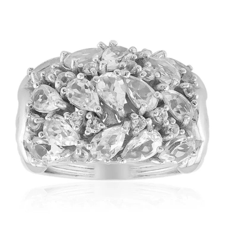 Erleben Sie die Anziehungskraft dieses exquisiten Rings aus 925er Sterlingsilber mit weißen Topasen. Er ist mit 15 Topasen im Birnenschliff und 14 Topasen im Rundschliff aus Nigeria besetzt, insgesamt 3,888 Karat. Perfekt für besondere Anlässe oder um Alltagsoutfits einen Hauch von Eleganz zu verleihen. Kombinieren Sie ihn mit einem raffinierten Ensemble für einen wirklich atemberaubenden Look.