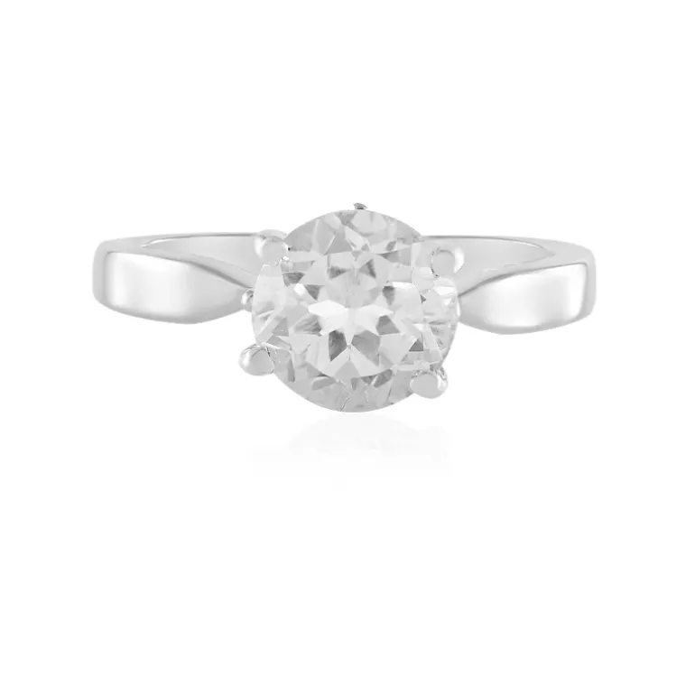 Dieser exquisite Ring zeigt einen atemberaubenden brasilianischen Weißtopas von 2,209 Karat, gefasst in poliertem Sterlingsilber mit Platinüberzug. Der ca. 8 mm große Edelstein im Rundschliff strahlt Eleganz aus und eignet sich daher sowohl für den Alltag als auch für besondere Anlässe. Kombinieren Sie ihn mit einem schicken Abendkleid oder einem legeren Outfit für einen zusätzlichen Hauch von Raffinesse und Glanz.