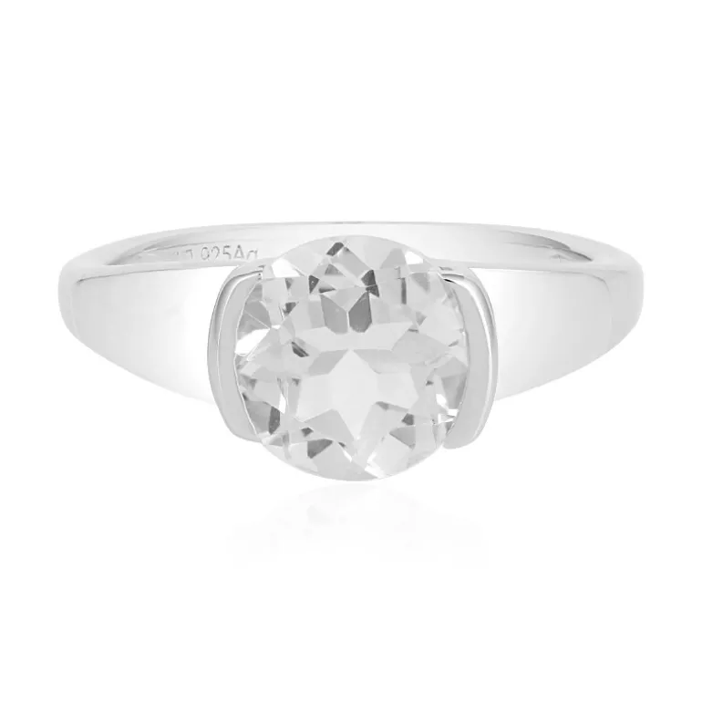 Entdecken Sie die zeitlose Eleganz dieses Rings mit brasilianischem Weißtopas, der mit einem 2,235 Karat großen Edelstein im Rundschliff schimmert. Der Ring ist aus platiniertem 925er Sterlingsilber gefertigt, wiegt ca. 2,12 g und misst 24 x 19 mm. Dieser Ring ist ideal, um jedem Ensemble einen Hauch von Raffinesse zu verleihen und verspricht, eine vielseitige Ergänzung Ihrer Sammlung zu sein.