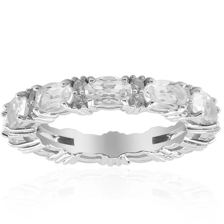 Dieser Ring aus Sterlingsilber zeigt die makellose Klarheit von weißen Topas-Edelsteinen. Der elegante Ring besteht aus einer Reihe von geschliffenen Topas-Steinen, die das Licht bei jeder Bewegung reflektieren. Die komplizierte Fassung hebt jeden Edelstein hervor und macht dieses Schmuckstück zu einer vielseitigen Ergänzung für jede Sammlung. Der Ring ist ein perfektes Accessoire, das sowohl tagsüber charmant als auch abends elegant ist und eine Reihe von Stilen, von der Businesskleidung bis zum Abendkleid, problemlos ergänzt.