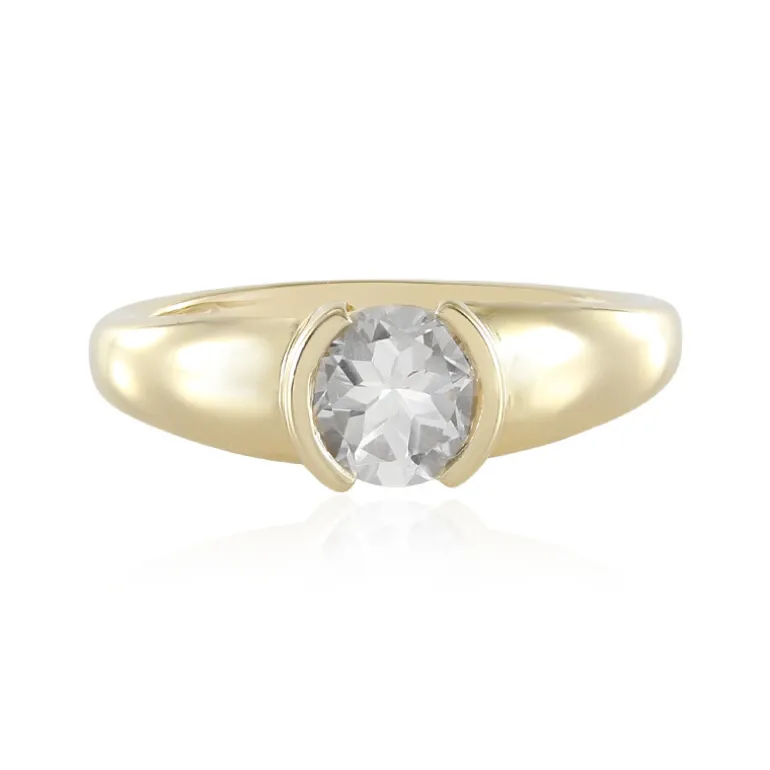 Entdecken Sie die schlichte Eleganz dieses Rings aus brasilianischem Weißtopas mit einem strahlenden 0,9-karätigen Edelstein im klassischen Rundschliff, der in vergoldetem 925er Sterlingsilber gefasst ist. Der 6 mm große Topas funkelt in seiner schicken, vergoldeten Fassung und wiegt etwa 1,97 g. Perfekt für den Alltag oder besondere Anlässe, passt dieser Ring mit seinem subtilen Glamour mühelos zu Ihrer Geschäftskleidung oder Abendgarderobe und verleiht jedem Look einen Hauch von raffinierter Anmut.