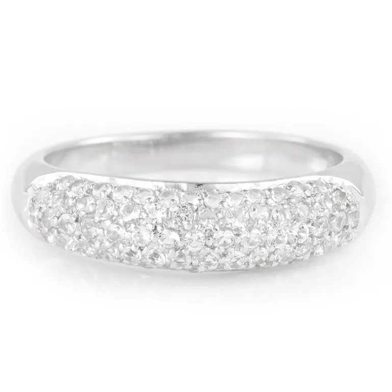 Entdecken Sie die schiere Brillanz dieses atemberaubenden Rings mit einem Pavé aus 69 brasilianischen weißen Topasen, von denen jeder meisterhaft rund geschliffen ist, um das Funkeln zu maximieren. Dieser sorgfältig in 2,3 g glänzendes 925er Sterlingsilber gefasste Ring strahlt eine zeitlose Eleganz aus, die perfekt für jeden Anlass ist. Egal, ob Sie sich für eine Gala herausputzen oder Ihrem Alltagslook einen Hauch von Glamour verleihen, dieser Ring mit einem Gesamtgewicht von 0,618ct bietet Luxus, der sowohl erschwinglich als auch schick ist. Eine unverzichtbare Ergänzung für jede Schmucksammlung.