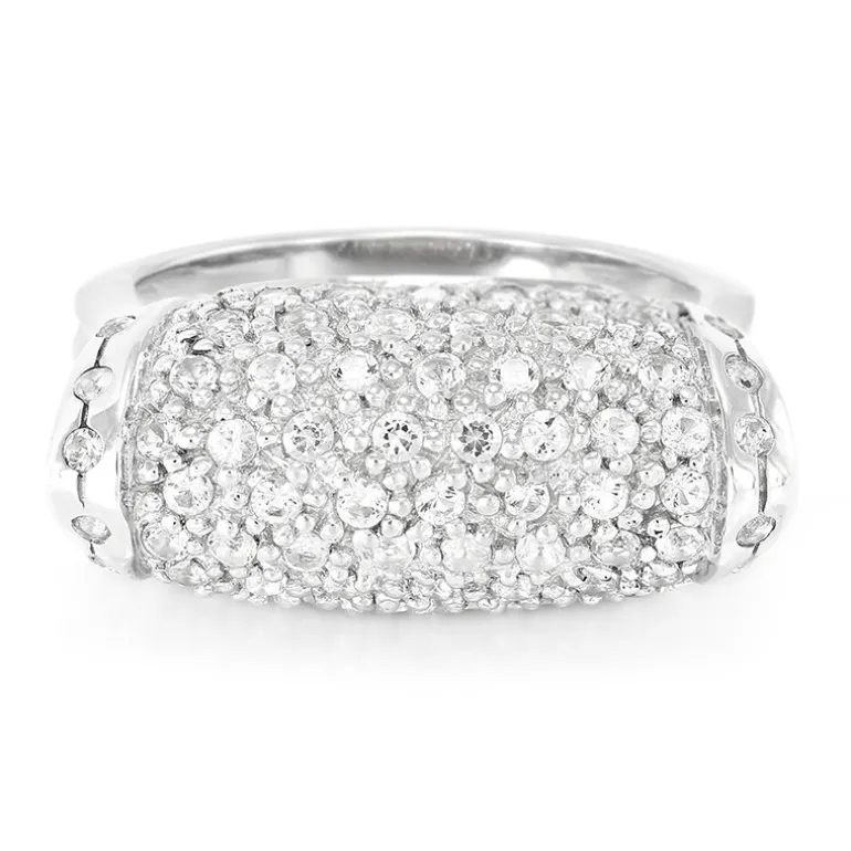 Erleben Sie den funkelnden Charme dieses Rings aus 925er Sterlingsilber, der mit einem üppigen Besatz aus brasilianischen weißen Topas-Steinen von insgesamt 1,258 Karat geschmückt ist. Die Edelsteine sind im Präzisionsschliff mit rundem Brillant geschliffen und fangen das Licht bei jeder Geste spektakulär ein. Das hohe Gewicht des Silbers verleiht ihm ein Gefühl von Luxus und Beständigkeit. Dieser Ring eignet sich perfekt, um Ihrer Geschäftskleidung einen Hauch von Raffinesse zu verleihen oder einen Abendlook aufzuwerten, und verspricht eine vielseitige Ergänzung Ihrer Schmucksammlung zu werden.