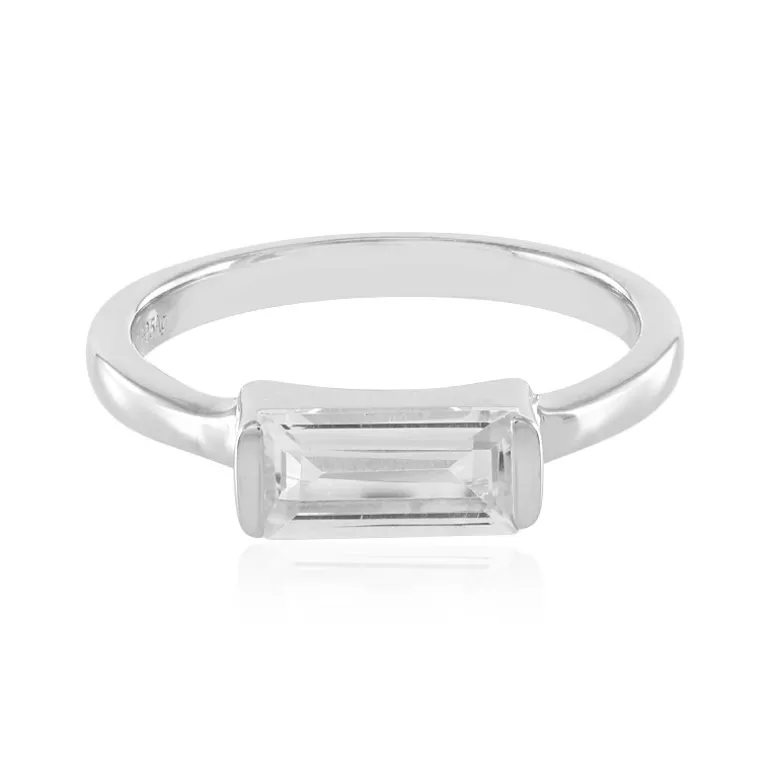 Entdecken Sie die Eleganz des Silberrings mit brasilianischem Weißtopas im Baguetteschliff mit einem Gewicht von 0,854 Karat. Der Ring ist aus 925er Sterlingsilber mit einer eleganten Platinbeschichtung gefertigt und eignet sich sowohl für legere als auch für formelle Anlässe. Sein raffiniertes Design macht ihn zu einem idealen Accessoire für einen Abend oder einen eleganten Look am Tag. Kombinieren Sie ihn mit minimalistischem Silberschmuck für ein stimmiges Ensemble.