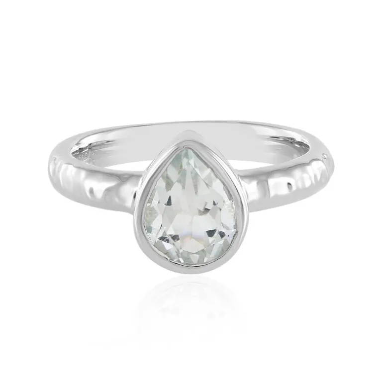 Entdecken Sie die schlichte Eleganz dieses Rings mit brasilianischem Weißtopas. Ein schimmernder 1,088-karätiger Edelstein, der anmutig in eine Birnenform geschliffen und von einem eleganten 925er Sterlingsilberband gehalten wird, bringt die Klarheit und Brillanz des Edelsteins zur Geltung. Die Platinplattierung verleiht diesem modernen Schmuckstück ein luxuriöses Finish. Seine zarten Proportionen eignen sich perfekt für das tägliche Tragen oder zur Aufwertung von Kleidung für besondere Anlässe. Dieser Ring ist ein Zeugnis klassischer Schönheit und verspricht, eine zeitlose Ergänzung für jede Sammlung zu sein.