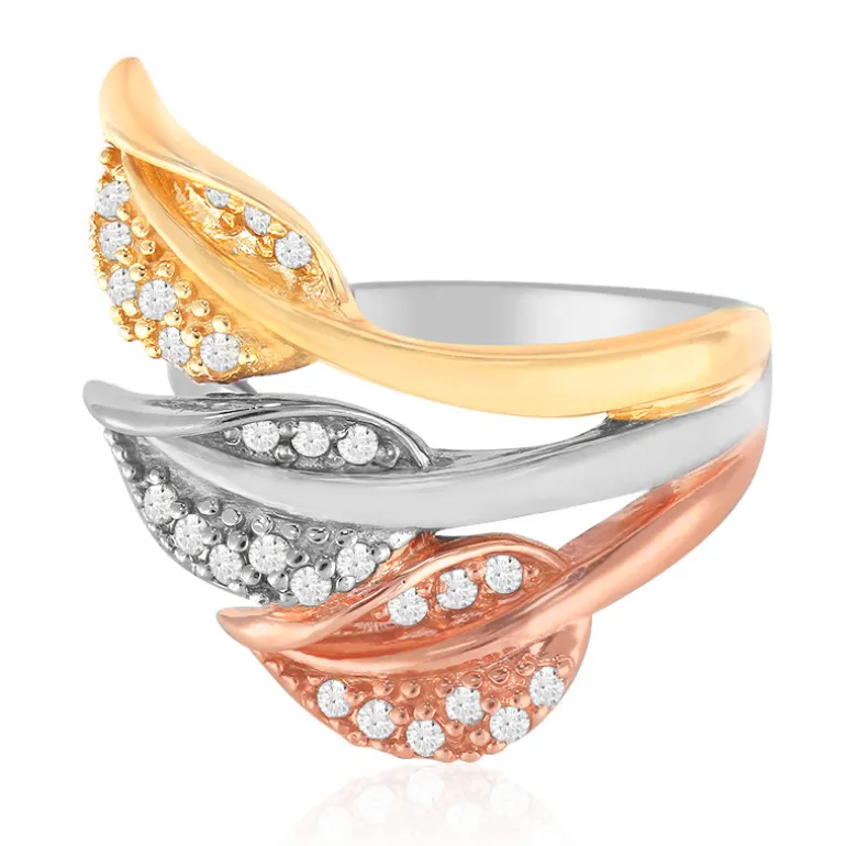 Tri-Color Wave 0,27ct Weißer Topas 925 Silber Ring